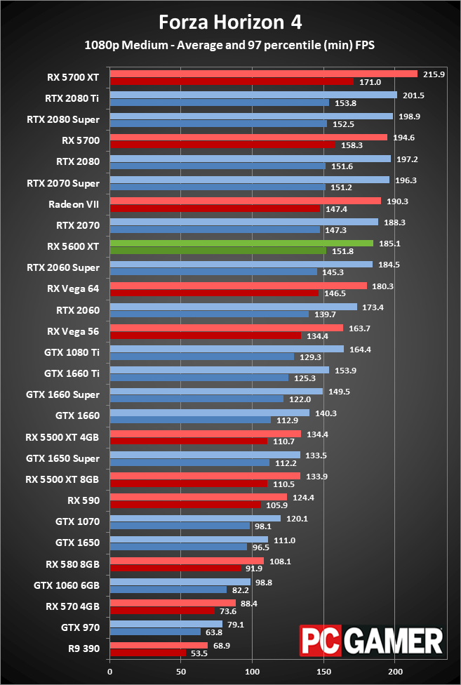 The 5600 XT is priced at the top of the mid-range GPU market, or the bottom of the high-end market. As such, it's important for it to perform well at 1080p ultra, and it does. All 12 of the test games still break 60 fps, with a composite average of 92 fps. Less demanding games won't be a problem.