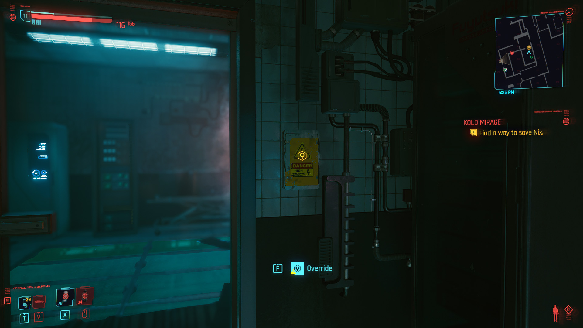 - Shut off the power: There's a circuit breaker to the right of the door and you can override this to save Nix, but the cyberdeck will be destroyed in the process.