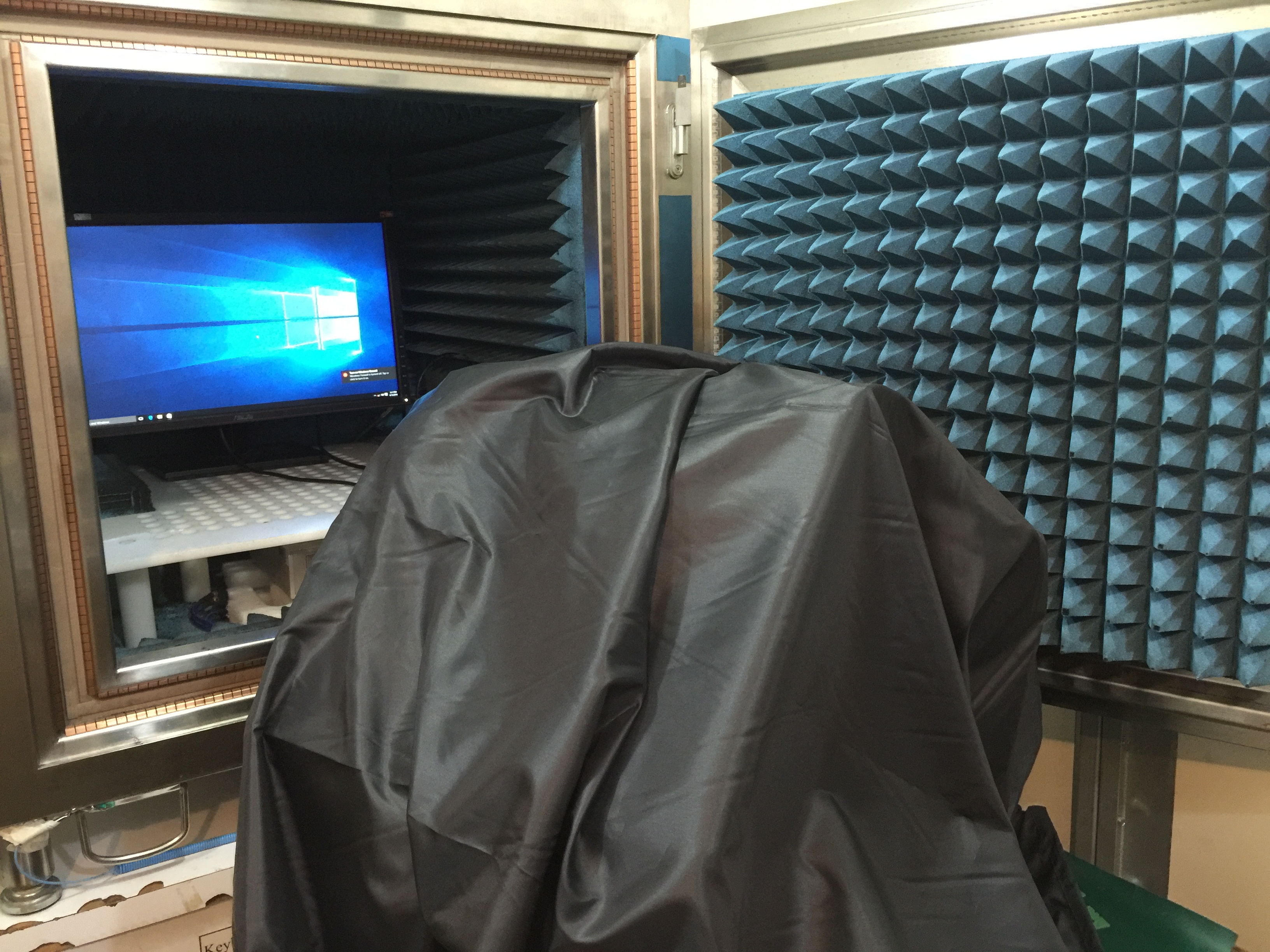 With the door closed, we couldn't hear anything from the outside. It was complete silence. Staying in the chamber for any amount of time above five minutes started to make us feel uncomfortable. We were told that if you stay in an anechoic chamber for long enough, you actually can hear the blood flowing through your ears, as well as your own heartbeat.