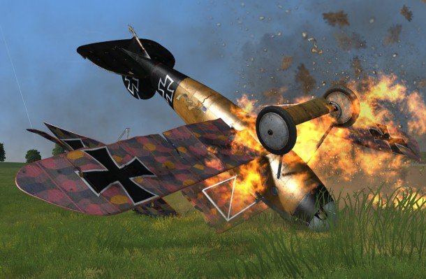 Where are you off to this fine evening, Herr Pfalz? A particularly warm corner of Hell if I have anything to do with it. I'm on him in a flash, eyes narrowing, guns blazing. Lead kindles flame and flame licks hungrily from engine to cockpit. Out-of-control, the Pfalz careers earthward dragging a pennant of black smoke behind it.
