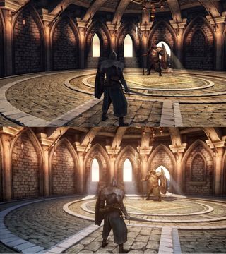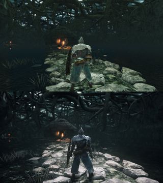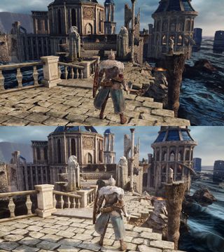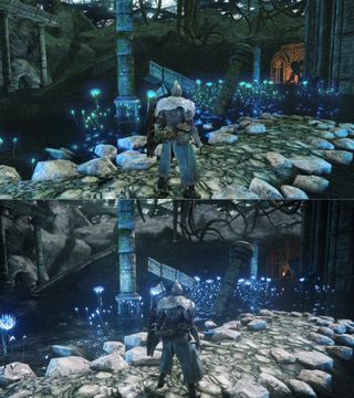 Flames of Old is an upcoming graphics mod for Dark Souls 2: Scholar of the First Sin that reworks and overhauls its look, profoundly changing Dark Souls 2 in the process. Modder Stayd is changing lighting, shaders, and map design, and the result is a striking upgrade to the visuals. Stayd is inspired by the pre-release renders for the game, and wants to bring the graphics "on-par with what was shown pre-release." They've showed off some pretty impressive screenshots on Twitter. Much of the lighting work changes how the game looks fundamentally, lessening the very flat tones of many environments. There are also small tweaks, like removing trees from the upper left, revealing the Shrine of Winter to add more sense of scale to the area: