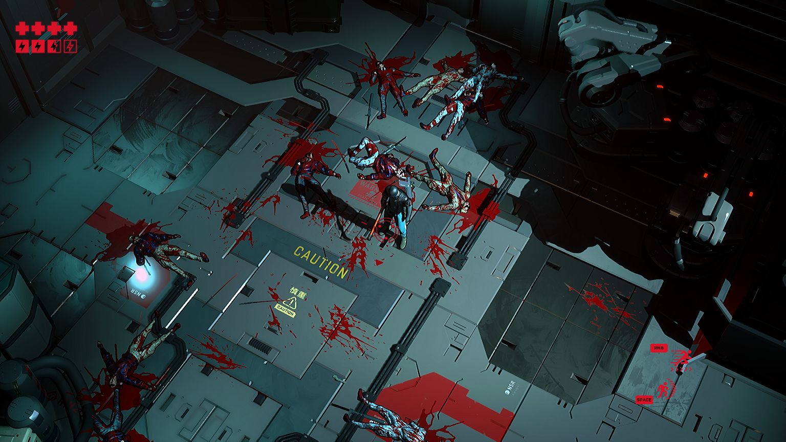 We've played the opening levels of the brutal new sci-fi action game published by Devolver.