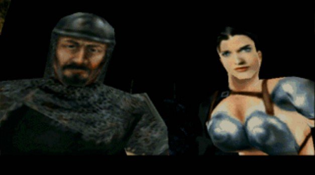 The game is Die By the Sword, released in 1998. It's sort of incredible, filled with the kind of ingenuity you'd hope for from a new company. It's also got the same lunatic flailing as Trespasser, released the same year. Since the descriptions sounded great—and Tom got all excited when I mentioned it—I've bought a copy and started playing. I've taken video of the game's intro and my first pathetic sword-swinging attempts below.