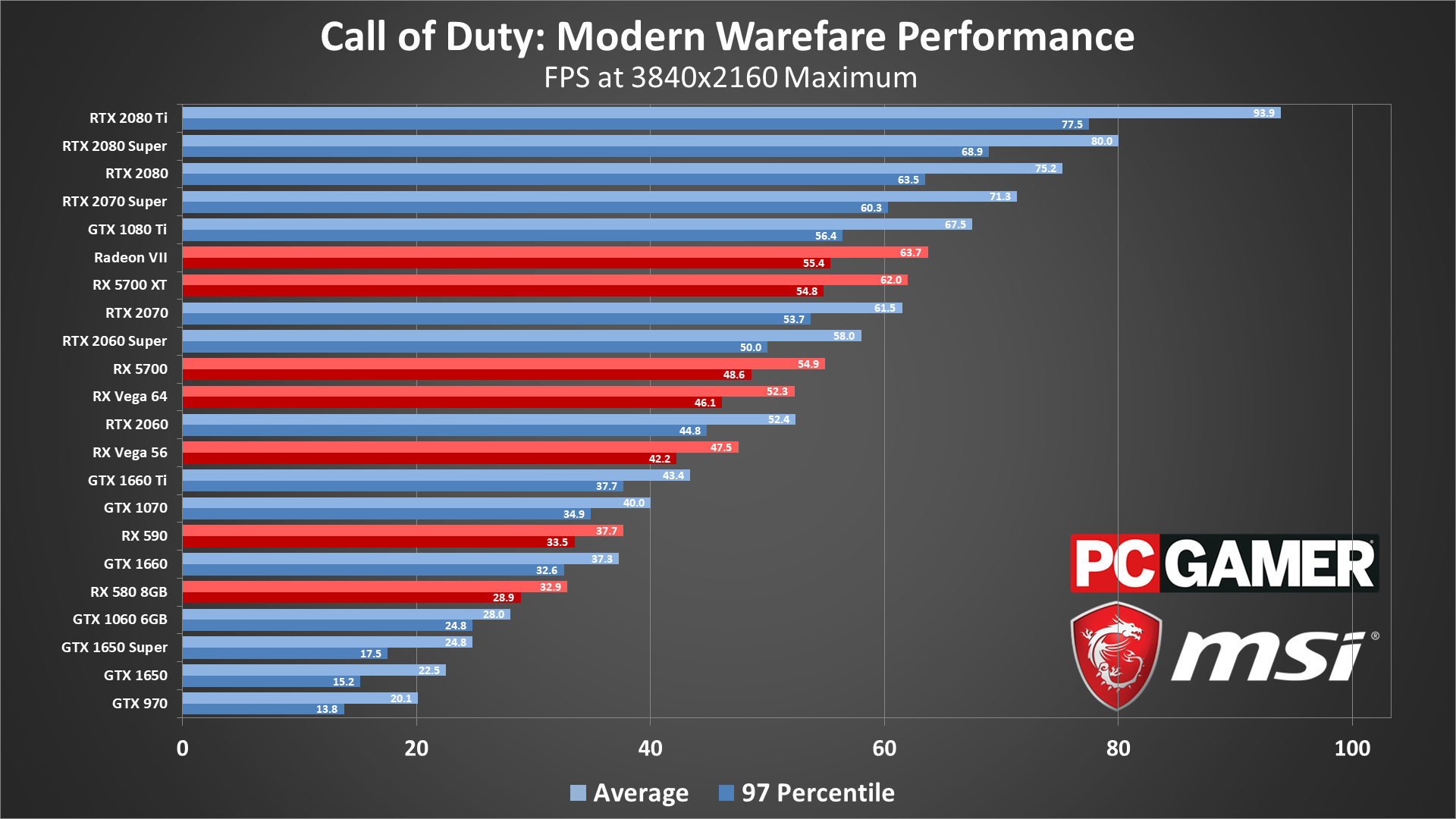 There are two exceptions to the above. First, AMD cards with only 4GB failed to run Modern Warfare at maximum quality—they simply crashed to desktop. Updated drivers or a game patch may fix this, as the GTX 1050 2GB card didn't completely fail to run.
