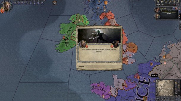 It's been an eventful decade. I've put down four rebellions—two of which were instigated by the same person—jailed my own son, freed him, reconciled, led multiple successful campaigns to the Baltics, and came pretty close to being murdered by my wife after legitimizing my mistress' and my daughter. County Breifne has been made part of my realm, and I can say with confidence that House ua Brian is closer to winning a throne than it was at the end of my father's reign.