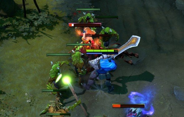 The current build of Dota 2 does little to explain itself, but it's still a game you want to get into, simply because it's gorgeous. The battlefield is shaded in pastels, lush grass and grey rock painted with the same low-contrast palette. The heroes are big, colourful, diverse characters with sharp outlines and distinctive shapes. There are already 63 to choose from, so being able to tell them apart is understandably a priority. Adding new ones is one of the main ways DotA games typically evolve after release.