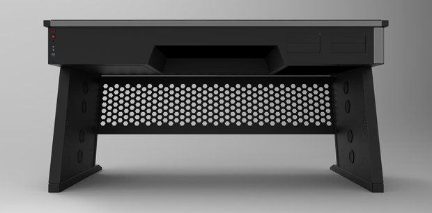 This year, once we got to Red Harbinger’s Cross Desk, we knew what we’d be sashaying across the red carpet in. The Cross Desk is literally the case and the desk. It’s no ordinary computer case, either. Made in a limited run of 90 (this is No. 37) the Cross Desk is made of powder-coated aluminum and steel components with a beautiful tempered glass top. It’ll fit everything from Mini ITX to HPTX and, of course, you can mount two separate systems if you like.