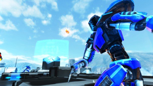 Though it's the beefier cousin of Mode 7's tactical combat game, Frozen Synapse, the granular control you had over the combatants in that game has given way to bigger, less conservative moves: you can currently only make decisions over when to toss the ball and when and where the players run. The bots take care of catching, intercepting or blocking according to the context, so all you're really concerned with is the overall structure of the play, which needs to take consider those randomly-generated walls: both styles of wall blocks the bot's movement, and while high walls block everything, low walls will allow the ball to pass over. I've won games by tossing a ball from one of the pitch to the other, thanks to the luck and a handy placement of low walls. It's that sort of moment that never regularly occurred in my games Synapse, but one I've seen a few times in Endzone: players seem likely to attempt something ludicrous, because they are already robots with shoulderpads so why not?