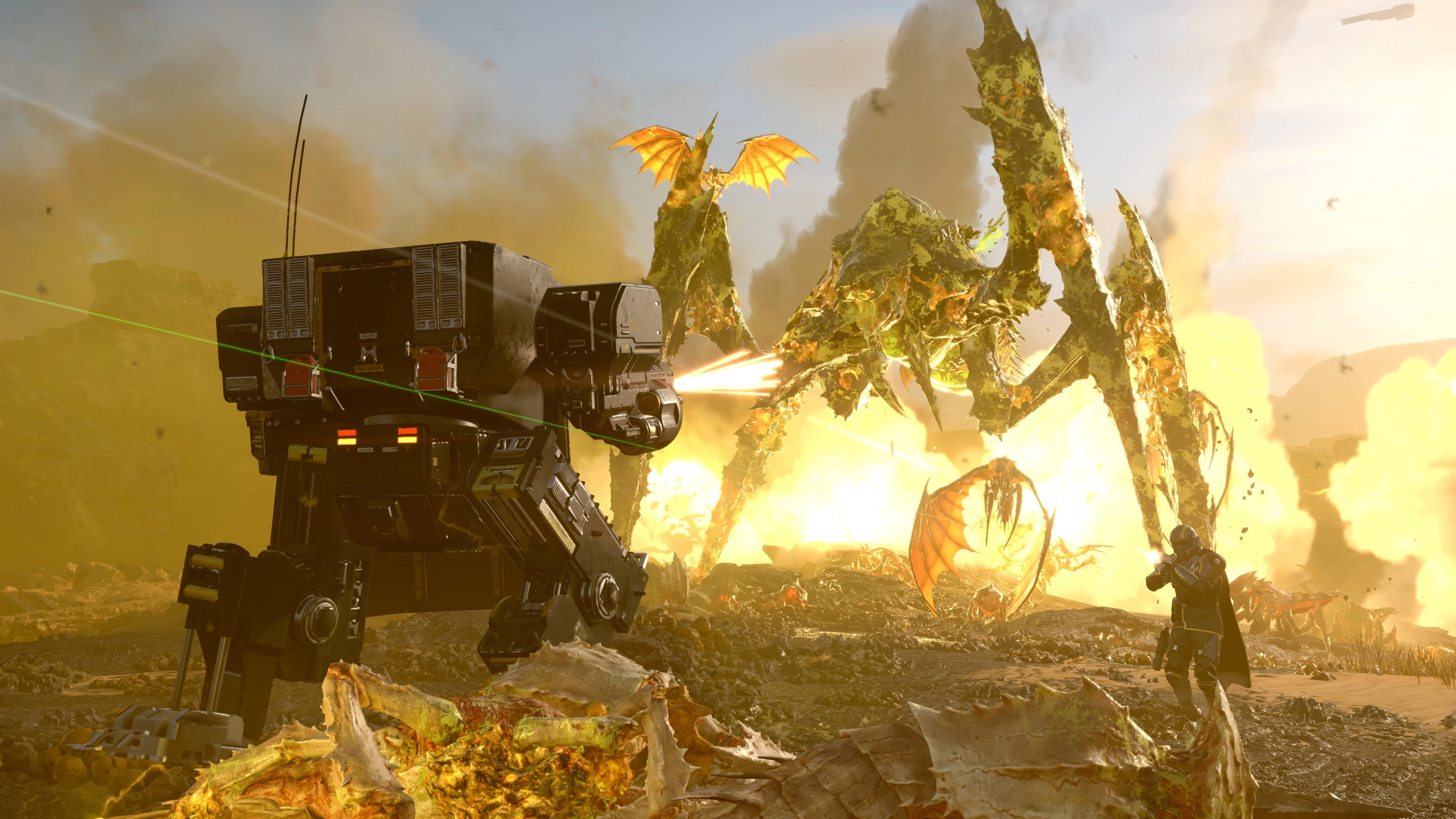 Article continues belowWhile mechs are the main event of Exo Experts, the warbond backs up these mobile artillery platforms with a hefty dose of small arms fire. Heading up the handguns is the MGX-42 Bullet Storm, a disposable machinegun that blasts an intense swarm of bullets from a frankly ridiculous number of barrels. Each drop-pod comes with two of the guns, similar to the expendable anti-tank stratagem. It's a downright disgusting concept that I am 100% here for.
