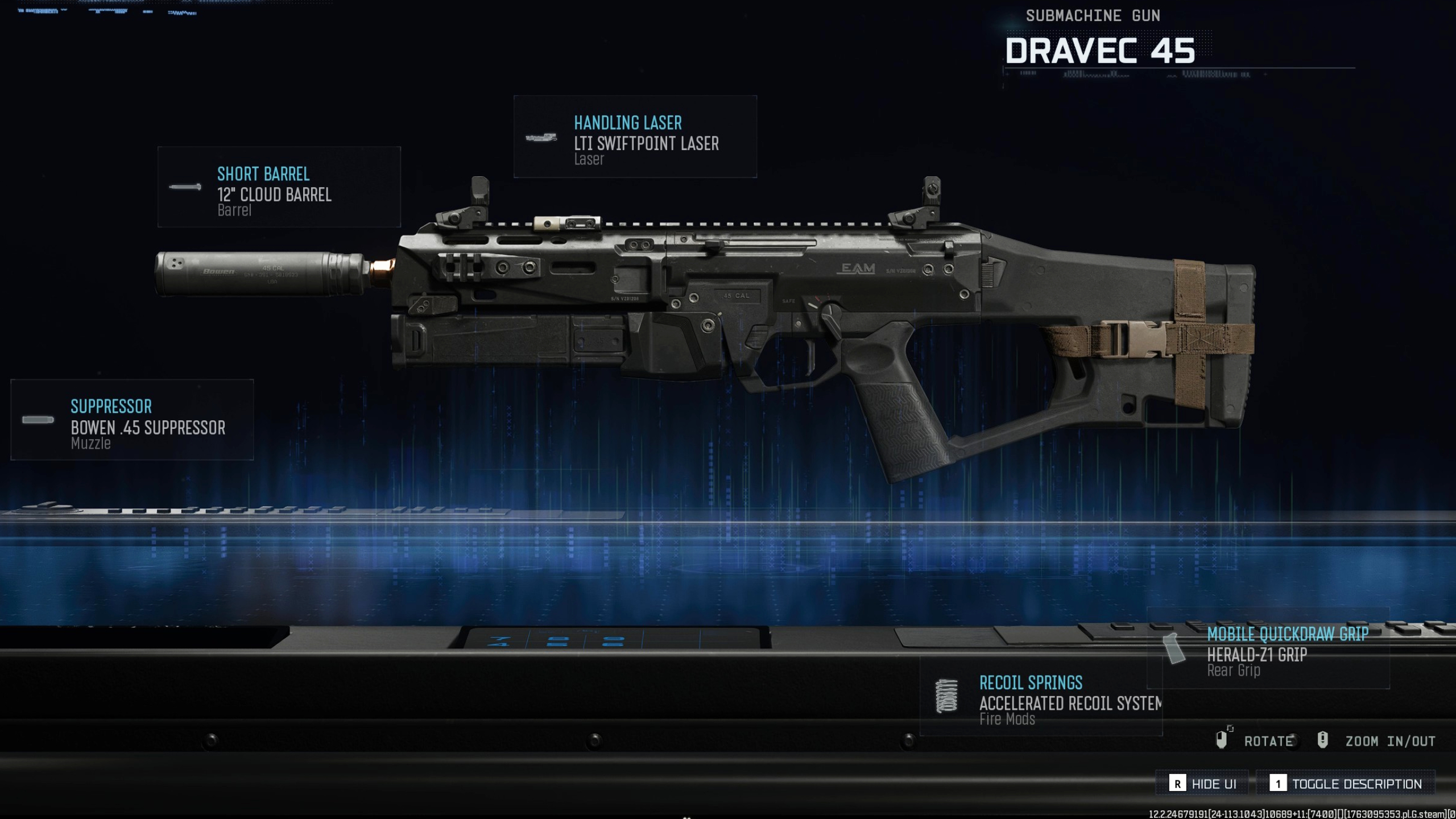 Here's the build code so you can import it into your game: S04-8V9R9-YGB51. To do this, just open the loadout menu, select the Dravec 45, and click the small gun icon to the right of the 'create new build' option.