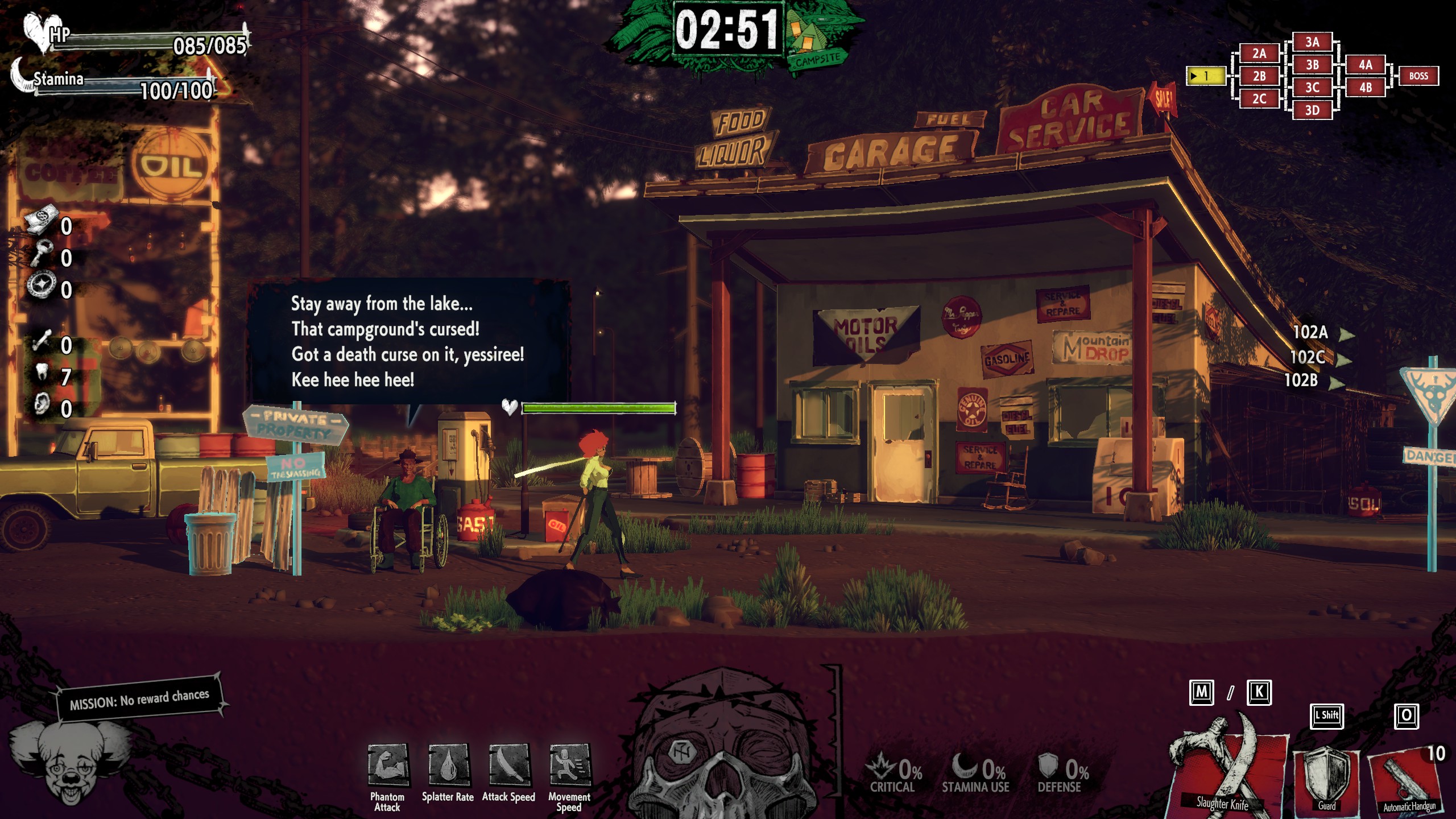 And here you are, in a roguelite 2.5D side-scrolling thing that doesn't feel quite right in the hand and is constantly trying to convince you of how kuh-razy it is with every character interaction. There's a monster who lives in your closet and sells upgrades! There's litres of blood spurting everywhere! Justine transforms from wilting wallflower to bodacious babe at the start of every new run! It's a feast for the senses that never satisfies because it all feels like it's desperately trying to persuade you of something—that it's wacky and edgy and cool. But nothing can be cool that so clearly wants you to think it's cool.