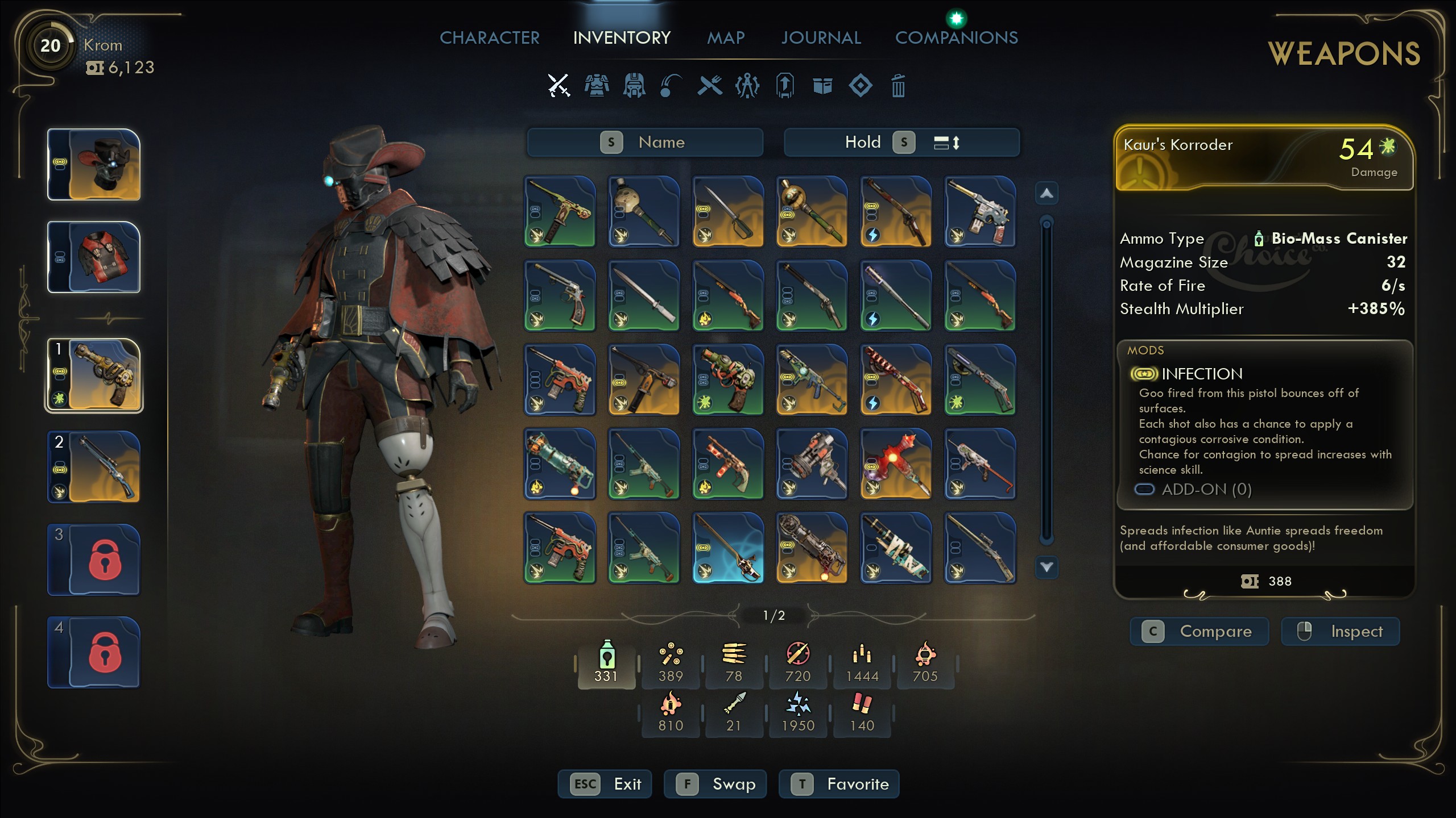 - Infection: Goo fired from this pistol bounces off surfaces. Each shot also has a chance to apply a contagious corrosive condition. Chance for contagion to spread increases with science skill.