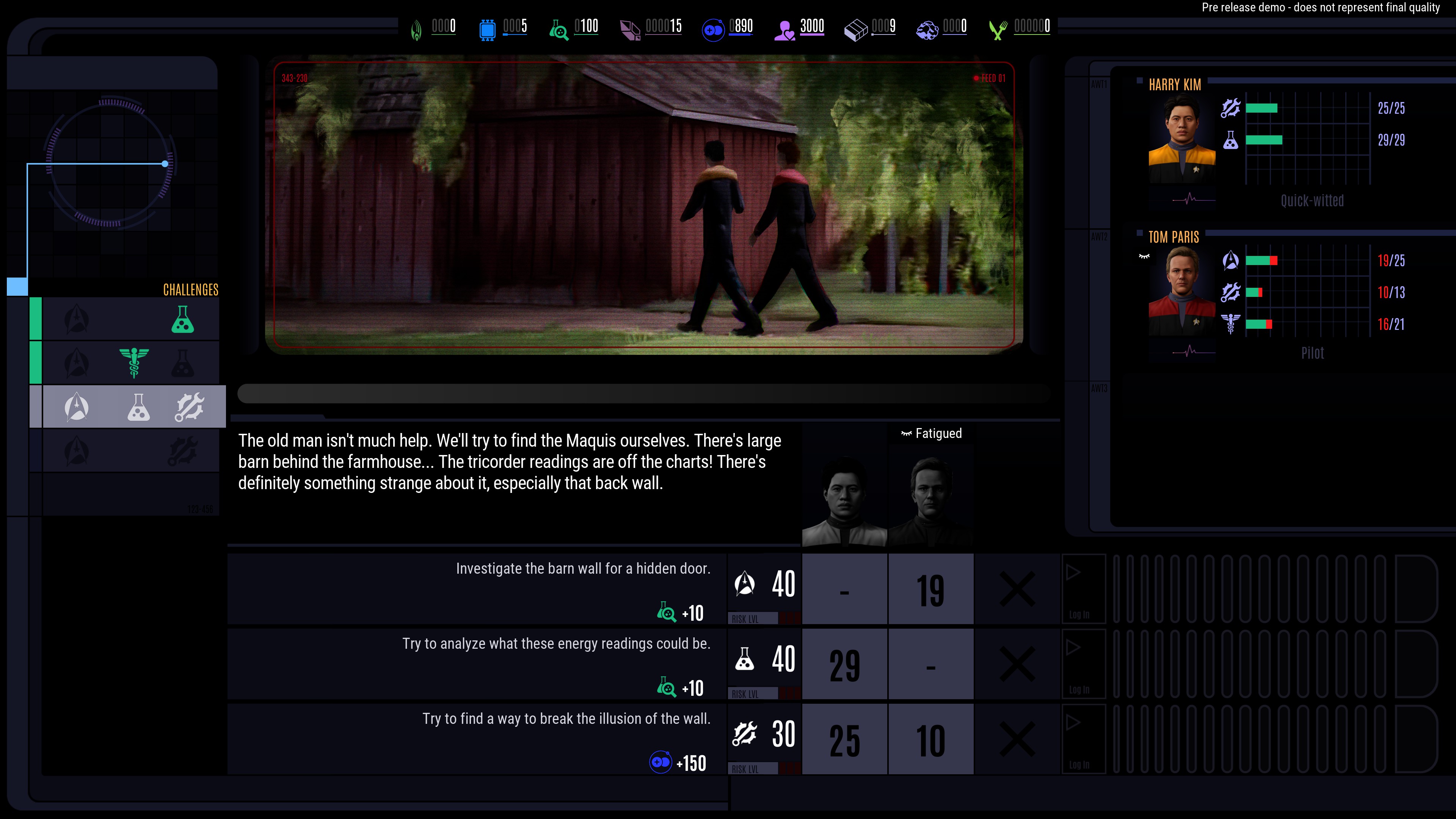 Sure, there are still away missions. But these are just brief, Choose Your Own Adventure-style detours that seem determined to rush through anything that might run the risk of becoming interesting. Particularly disappointing is the decision to make these sequences so UI heavy—and the UI ain't a looker. With such limited art, these sequences are more like text adventures than visual novels, but without evocative prose to carry them.