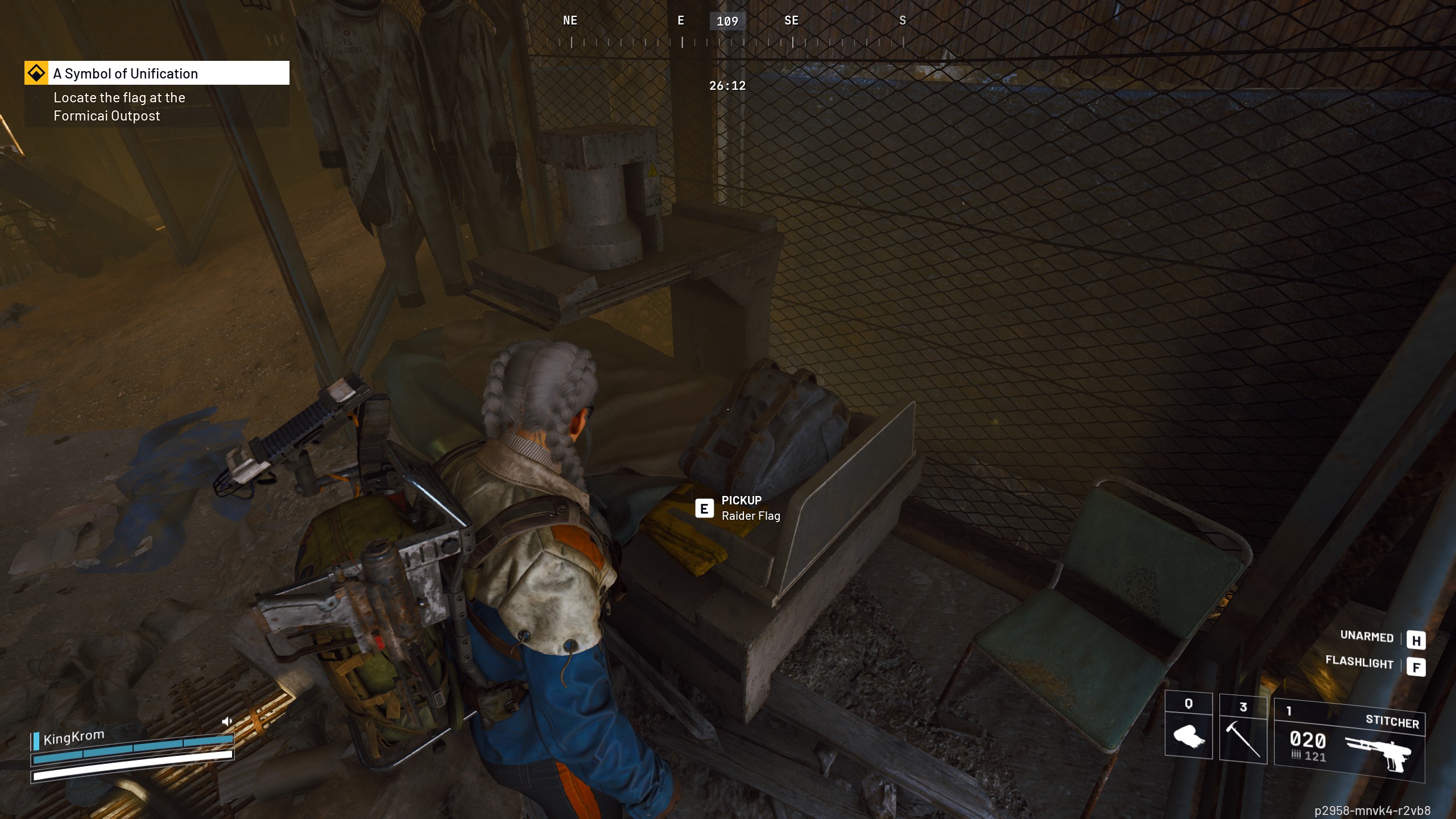 Just as you enter, look to your right for a medical gurney with a yellow-marked backpack on it. Interact with this to get the Raider Flag item.