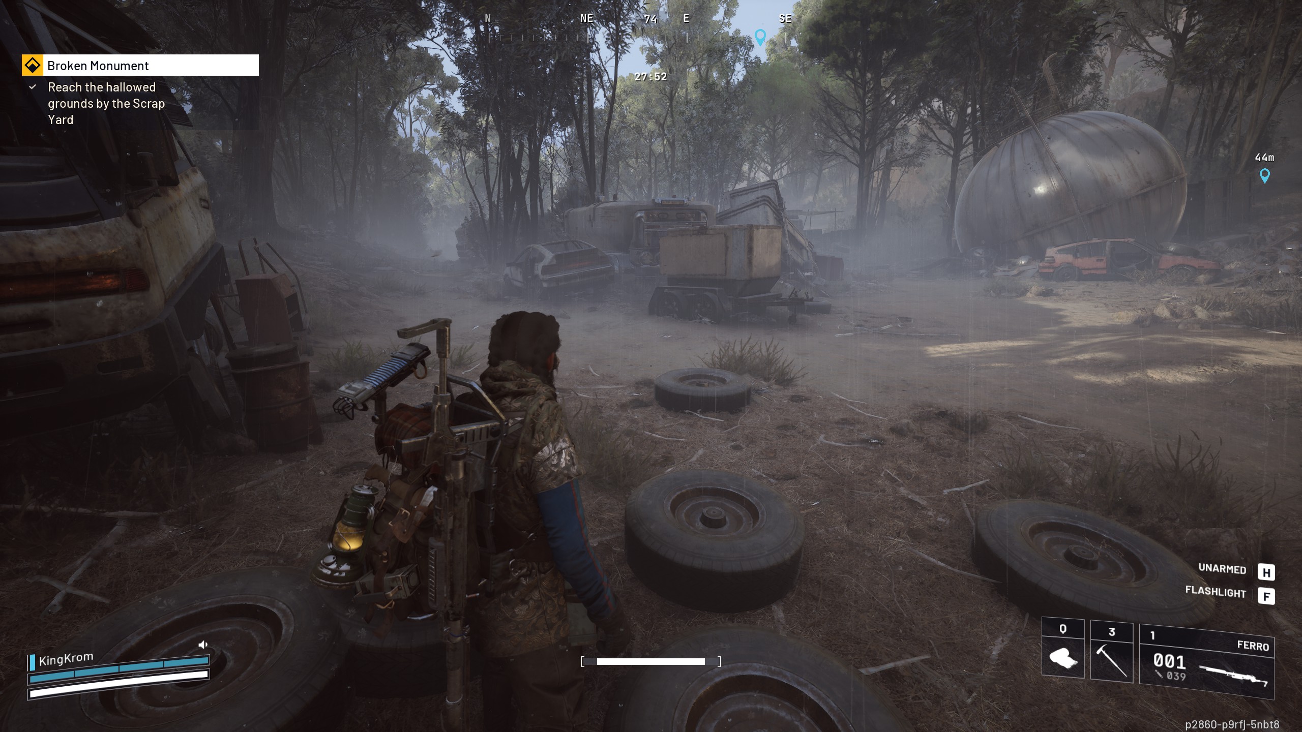 First off, you've got to head to the Scrap Yard location in the south of Dam Battlegrounds, where you'll then have to find three separate items. This stage completed for me when I entered the south end of the yard by all the ruined vehicles and the tires lying on the ground, which is closest to most of the items you need to get.