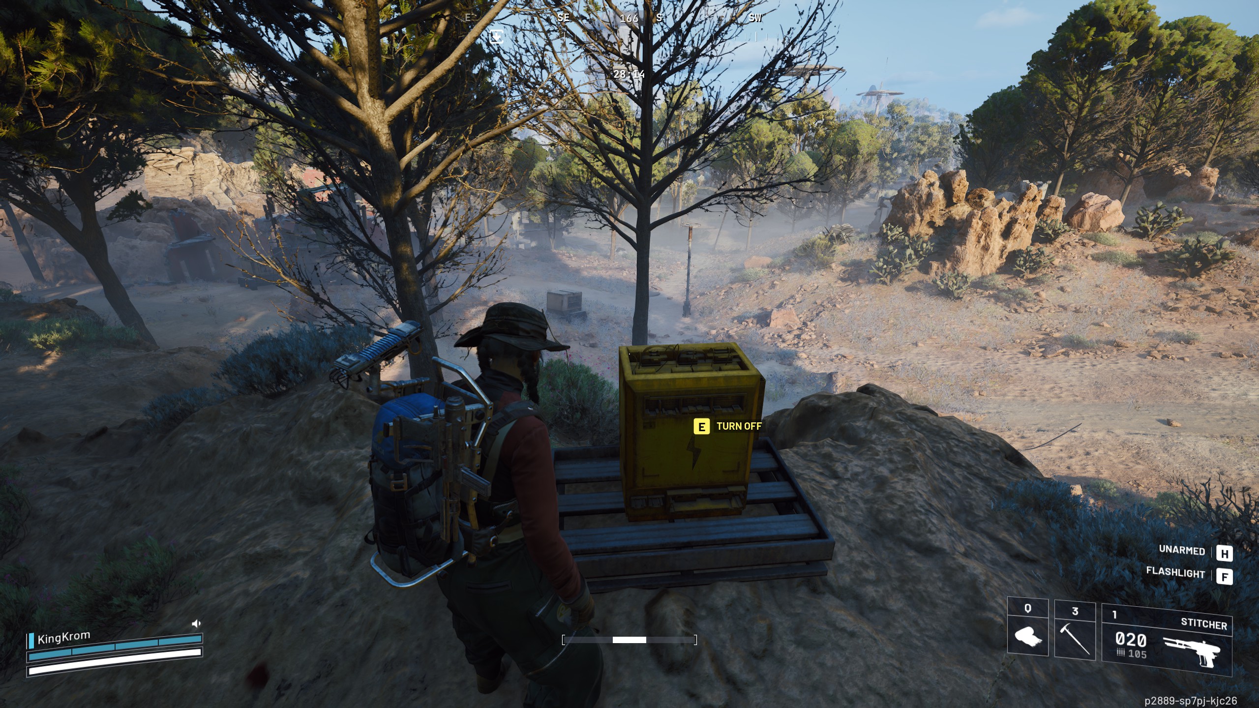 The third power switch is actually to the south of the trap. If you head back down the trail towards the Hydroponic Dome Complex, you'll find the last yellow-flashing box close to the path. Interact to turn it off.