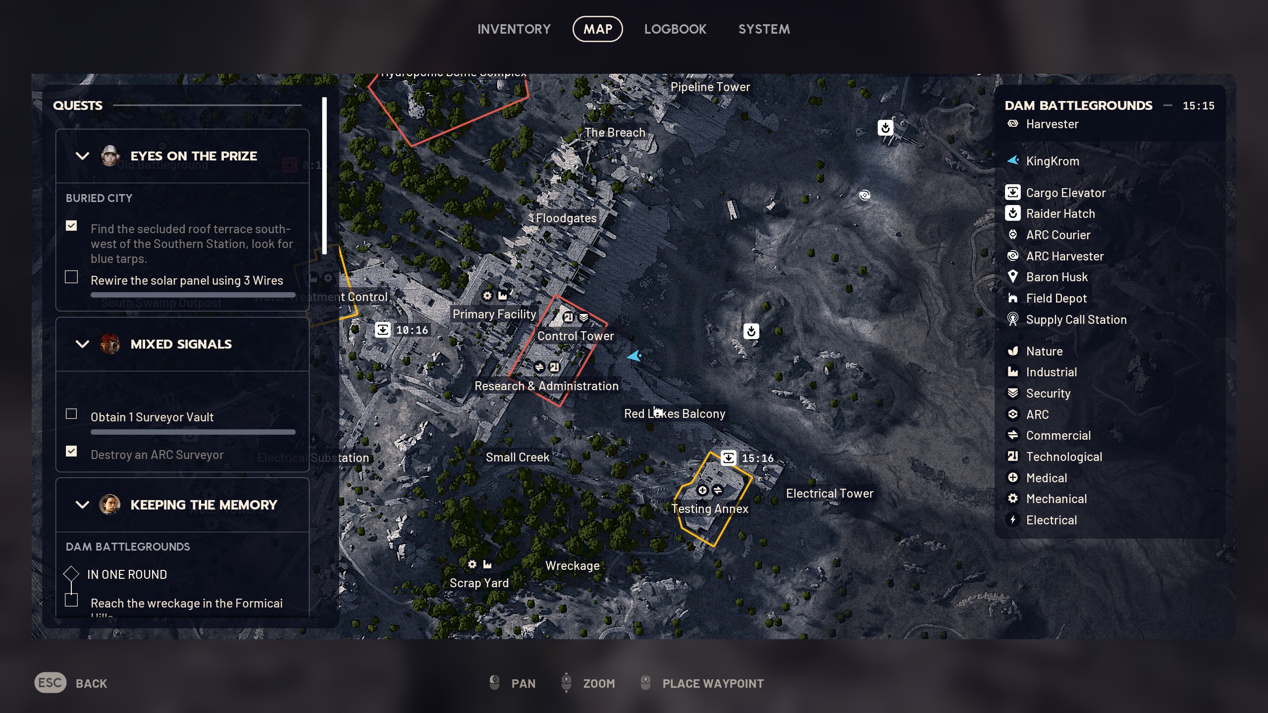 The first step is pretty straightforward; you'll want to head into the big basin area in the east of the Dam Battlegrounds map—be careful if the Harvester event is active, because this is where the queen likes to patrol. You're looking for a big open pipe directly to the east of the Control Tower, built into the lower part of the dam.