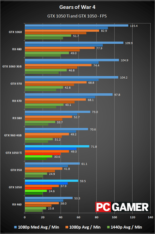 Overall, the GTX 1050 ends up being a few percent faster than the GTX 950, which isn't much. Anyone looking at the GTX 1050 and saying, "Yeah, that's exactly the sort of performance I need" could have said the same thing about the 950 any time in the past year.