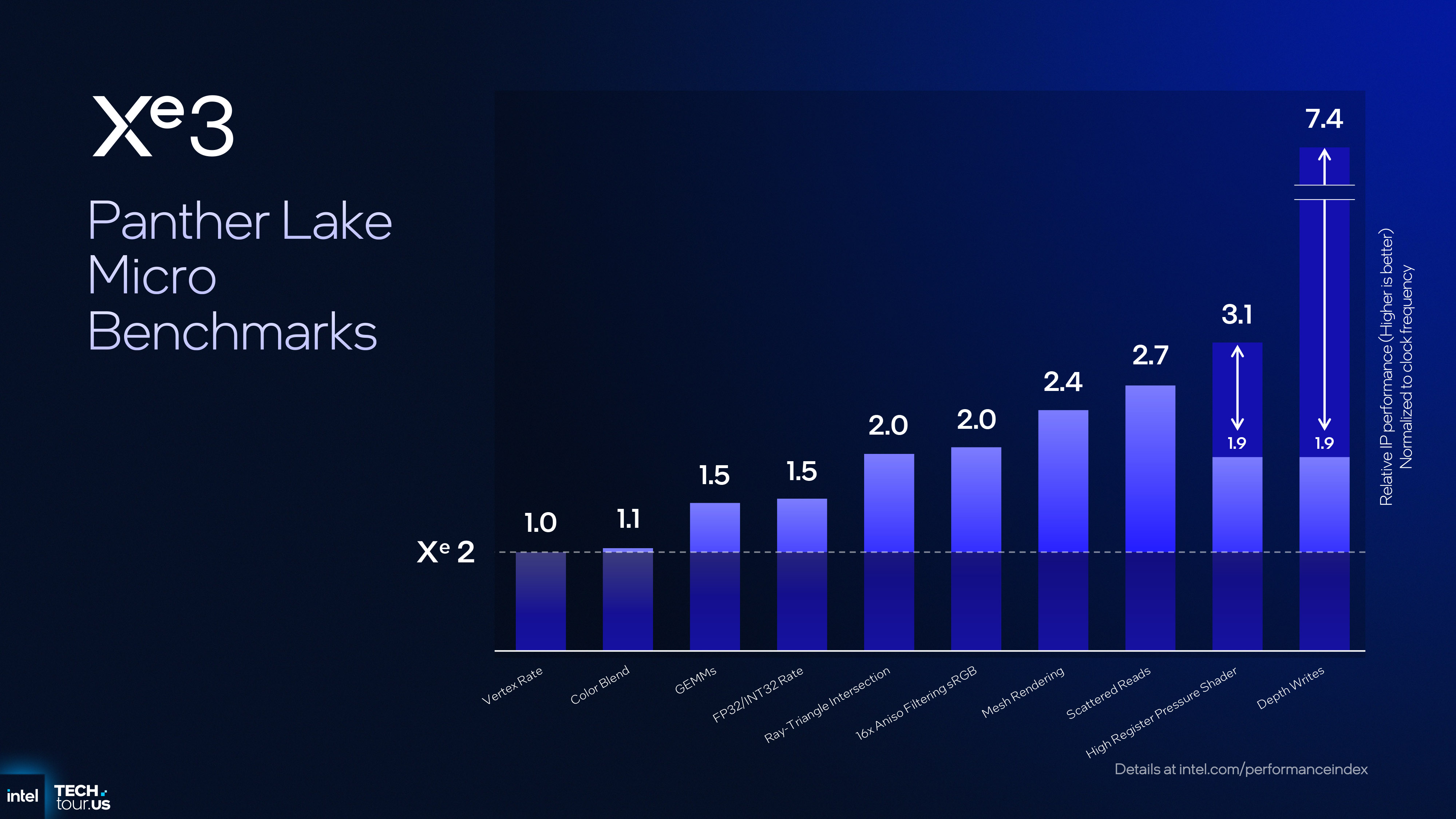 That's not the only thing, though. Each Xe3 core can handle up to 25% more threads than Xe2, which also helps to improve shader utilisation, along with variable register allocation. Intel didn't say too much about the latter, but apparently it's a whole new system, one that should reduce the amount of register thrashing the GPU could experience.