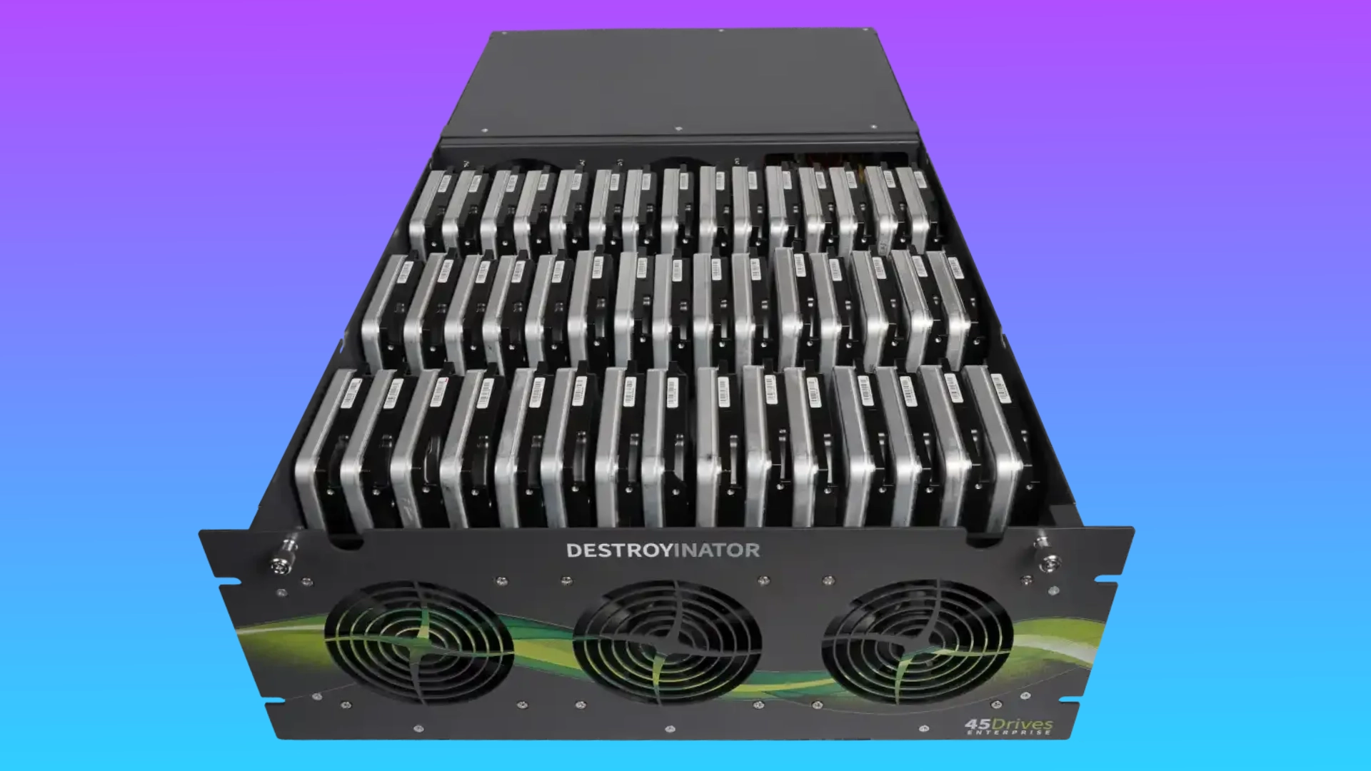 Enter The Destroyinator from 45Drives. This beefy boy billed as an 'industrial-grade' solution to data destruction is capable of wiping up to 60 drives all at once. If you happen to want to blitz an honestly impressive amount of ill-advised, teenaged prose in a hurry, the Destroyinator's wipe speed can apparently reach up to 64 GB/sec. That means I can rest easy in the knowledge that my first few odes to hardware won't turn up in a museum some day in the far future.