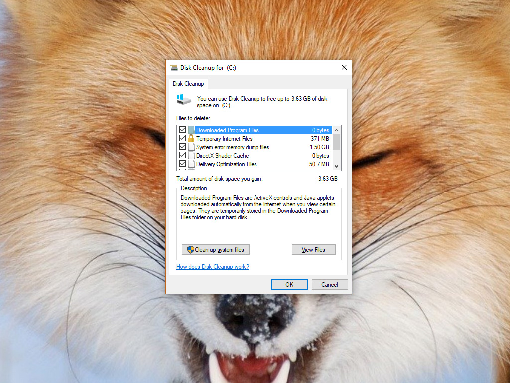 The Disk Cleanup tool rids your system of temporary files, dumps your Recycle Bin, and optionally removes other files, such as memory dumps from system errors. Depending on your system, you can potentially free up several gigabytes of space.