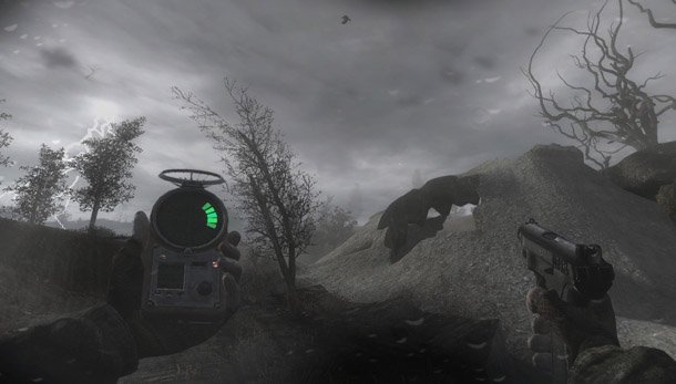 This makes sense: there's nothing particularly realistic about a bunch of illegal scavengers and murderers walking around in the Exclusion Zone with tracking devices that lets everyone else know exactly where they are. Still, since the radar is no longer there, I keep forgetting it's no longer there. The absence of beeps still registers in my brain as an all-clear for other stalkers, and so I kept blundering into the path of bandits and other ne'er-do-wells who would fill me with bullets as I strolled obliviously in front of their crosshairs.