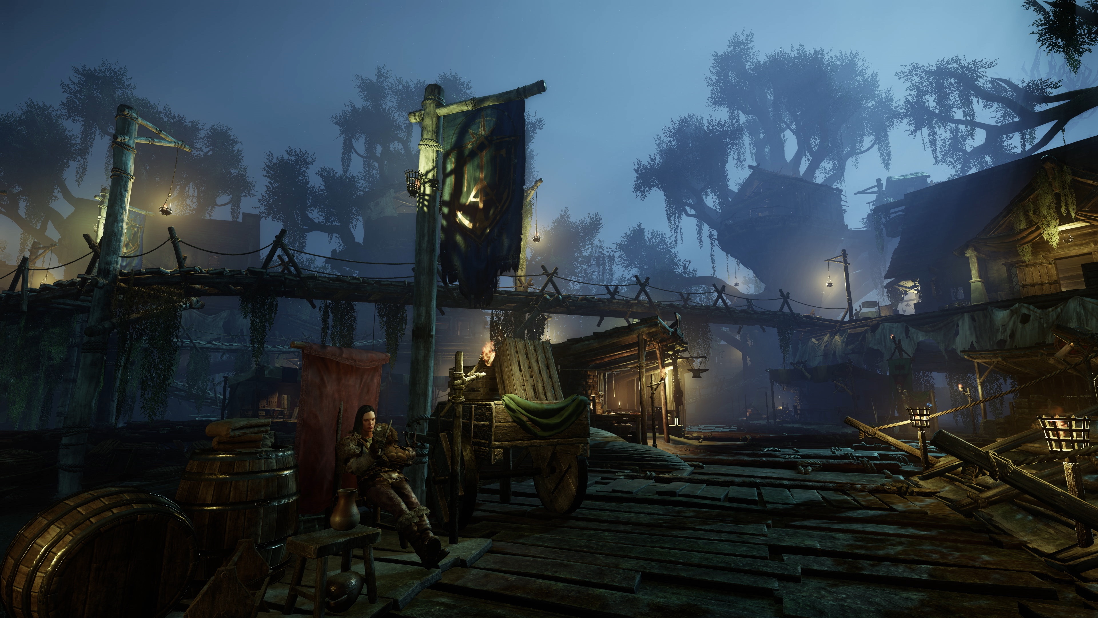 Reekwater is gloomy, which is expected given the name, but the bayou setting is impressively lush. It's nothing as good-looking as Crytek's Hunt: Showdown, of course, but I could've gotten lost in New World's stagnant (but somehow potable) pools just the same. I also found a badass horn helmet in my inventory, so of course I wore that: