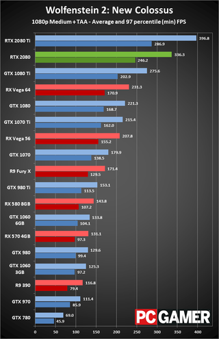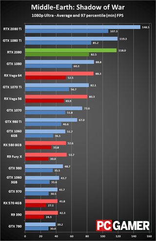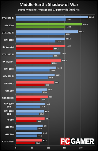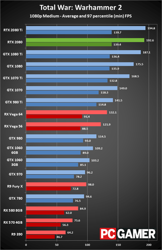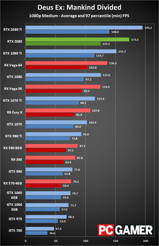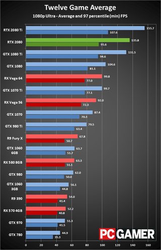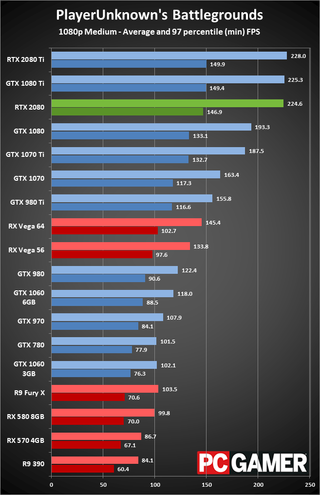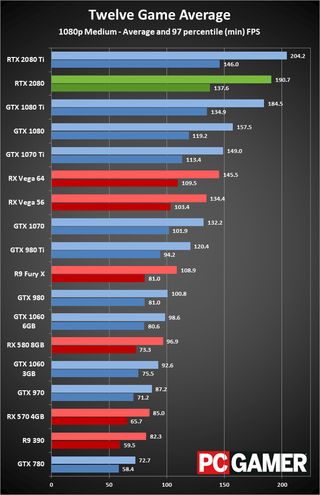 You really shouldn't be thinking about buying a GeForce RTX 2080 for 1080p gaming—at least not without ray tracing and/or DLSS 2X. It's still technically faster than previous generation 10-series cards, but the high-end cards all hit 90fps averages or more. The 1080p medium charts are provided purely for the sake of completeness.