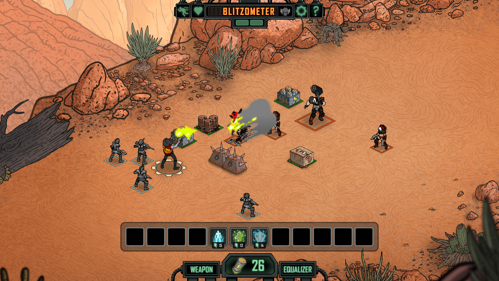 Along the way, NPC dialog and special encounters help flesh out the weird, Mad Max-ian fiction of Bedlam. I met mutants, seers, robots, cyborgs, bandits, and merchants—and only a few of those tried to kill me. I was eaten by giant sandworms and reinforced by wandering bands of refugees. Making a wasteland feel alive is tricky business—a wasteland is, by definition, a place where nothing lives—but Bedlam’s apocalypse is teeming with danger. The wonderful art is almost too colorful for a game set in the desert, and after several hours, I’m confident saying that Bedlam rocks my favorite soundtrack in any game since Bastion.