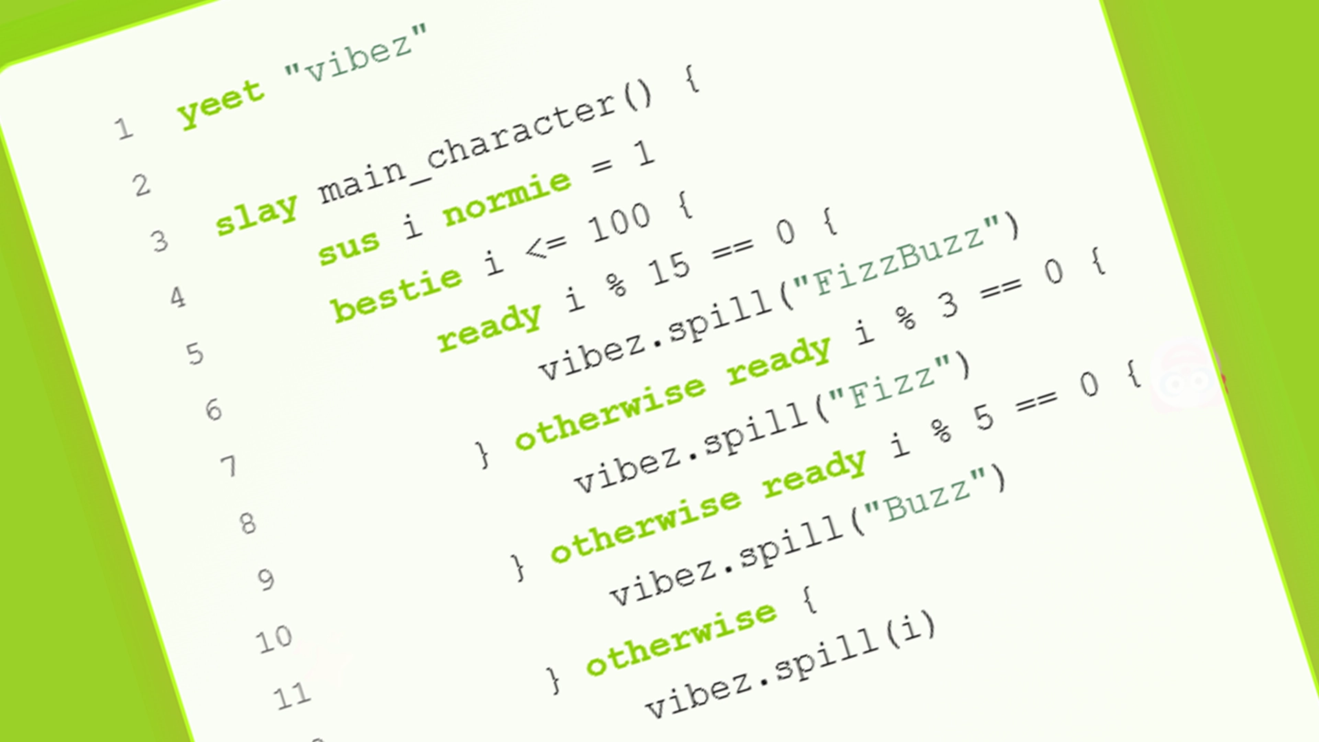 "Hey, can you make me a programming language like Golang but all the lexical keywords are swapped so they're Gen Z slang?"