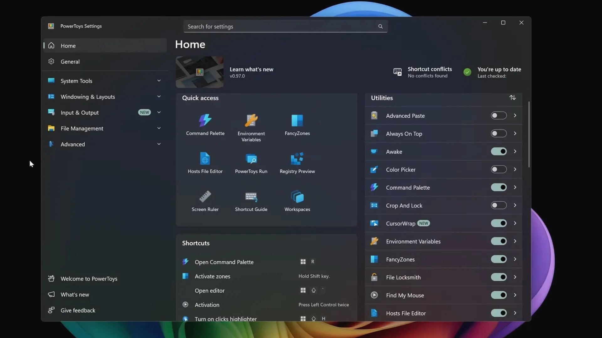 The main feature of the new PowerToys update is the increased control you have over the colour palette for Windows' GUI. Tired of the boring default options? Fancy having the Start Menu in vivid vomit green? Grab PowerToys 0.97 and tweak away until your eyes spin like they're using Cursor Wrap.