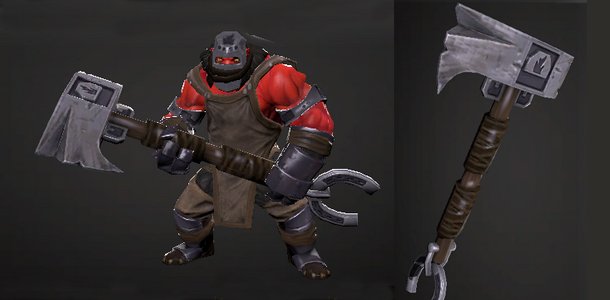 This equipment bundle isn't the most spectacular looking or the most dread-inducing, but it's the best of the cheap low-priced bundles. It doesn't take a dramatic twist or a whimsical flair that morphs his namesake into a bundle of flowers or something. Axe is still about the axe with this bundle--but is portrayed as a humble blacksmith who wasn't trained for battle but picked up his weapon in a moment of desperation to fight for something he holds dear--family, home, or something else. I like the narrative this bundle creates more than the standard "one-man army grunt soldier" that's Axe's official backstory.