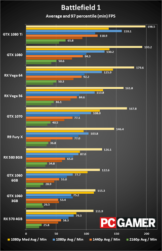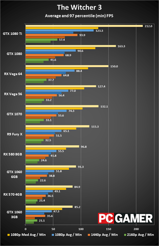 I often recommend skipping a generation or two of hardware between upgrades, which means upgrading every 2-3 years on graphics cards. Each generation will typically improve performance by 30 percent or so, and that's not usually enough to warrant an upgrade for most gamers. If you skip a generation, you end up with potentially a 60-70 percent jump in performance. Well, Vega 64 ends up being right around 30 percent faster than Fury X, but where Fury X came up just short of the 980 Ti, Vega 64 drops down to the vanilla 1080.