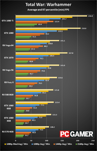 One other thing to note is that I haven't retested the GTX 1060 or Polaris cards lately (the numbers are a few months old), but I did retest the 1080 Ti, 1080, 1070, and Fury X using the latest drivers (384.94 for Nvidia, 17.7.2 for AMD) running the current versions of all the games—performance has improved, sometimes significantly, over the past year or more since the hardware was released. Some of that comes from driver tuning, but equally important has been software updates from the game developers, where many titles have been tweaked to work better on Ryzen 5/7 systems, and/or to run better with DX12. That's had a knock-on effect for the 6-core i7-5930K, so thanks AMD!