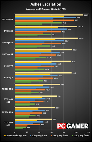 Or perhaps the Vega architecture is merely ahead of its time? AMD has talked about numerous architectural updates that have been made with Vega, including DSBR, HBCC, 40 new instructions, and more. You can read more about the architectural updates in our Vega deep dive and preview earlier this month. In the professional world, some of these could be massively useful—professional graphics can be a very different beast than gaming. But we're PC Gamer, so what we really care about is gaming performance—and maybe computational performance to a lesser degree.