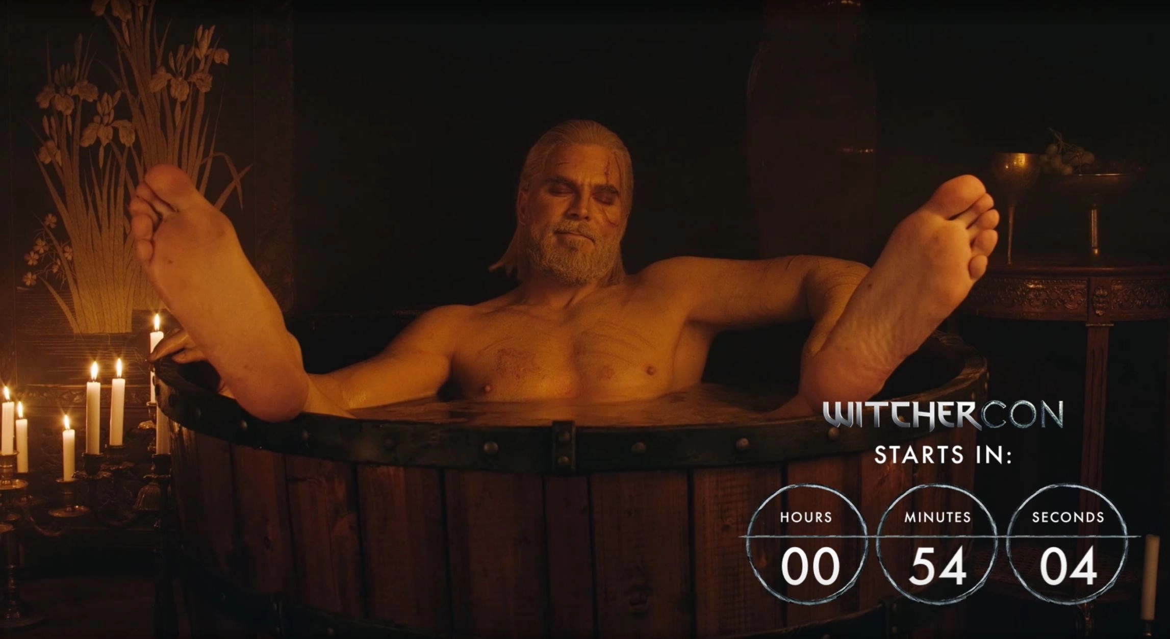 The official WitcherCon Geralt hot tub stream is incredibly chill