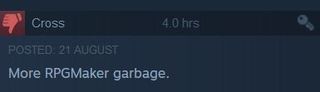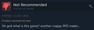 Players began to associate RPG Maker's RTPs with mediocre, "lazy" games. The engine got a bad reputation. In a 2016 Reddit thread about why people had begun to hate games made with RPG Maker a community manager who worked for Degica said, "I really wish people who weren't ready for the big time would stop submitting to greenlight. It would make my job easier. Because the perception of RM is already bad enough without people trying to throw their 10 minute effort game on greenlight."