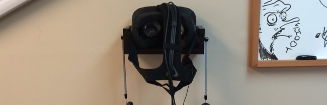 I was so excited when the Vive arrived on Monday that I put up a shelf just to hold it, and after five days I’m really happy to find that I’m still excited. After years of mainly trying out VR headsets at trade shows, each experience months apart from the last, I wondered if part of my fascination was due to it being a treat. When I actually have one all to myself, will I even want to use it? It hasn’t even been a week so I can’t soundly make that judgment yet, but so far so good: I’ve used the Vive every night and it still feels fun to put on. I’ve especially had fun in Hover Junkers, which I posted a review of today. I get tired after 30 minutes of play (I should really try using the rowing machine I never use), but I keep going back for more.